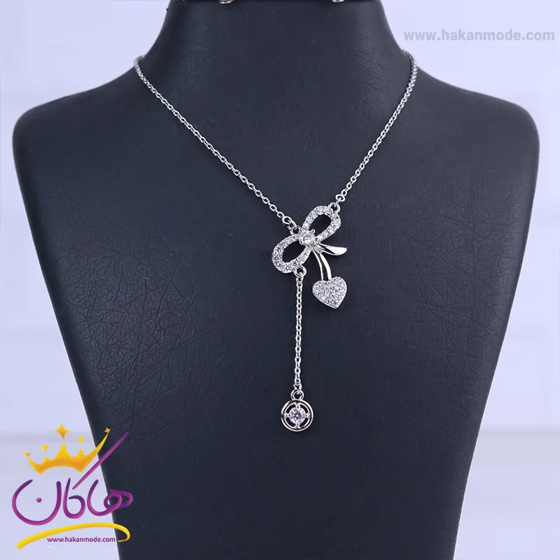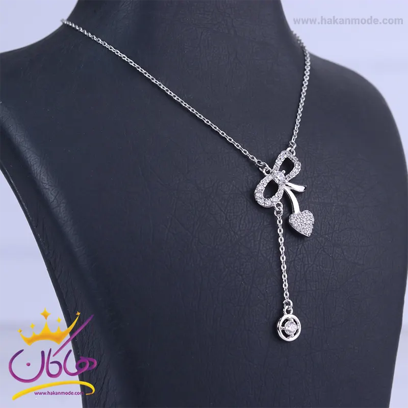 خرید گردنبند استیل زنانه پاپیون و قلب نگین دار با بهترین قیمت گردنبند استیل زنانه پاپیون و قلب نگین دار،