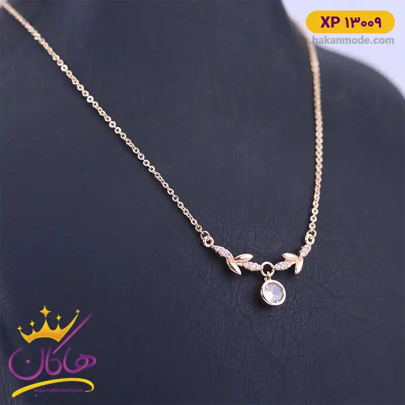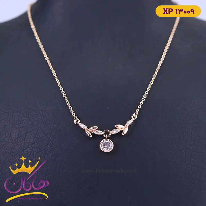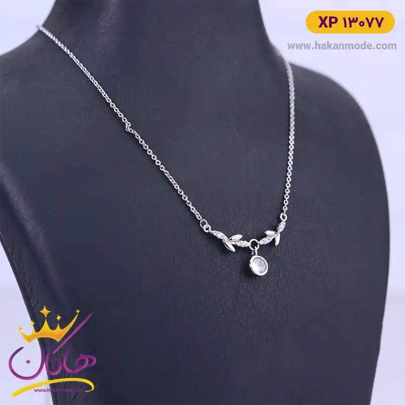 گردنبند استیل زنانه برگ و نگین | xp 13077