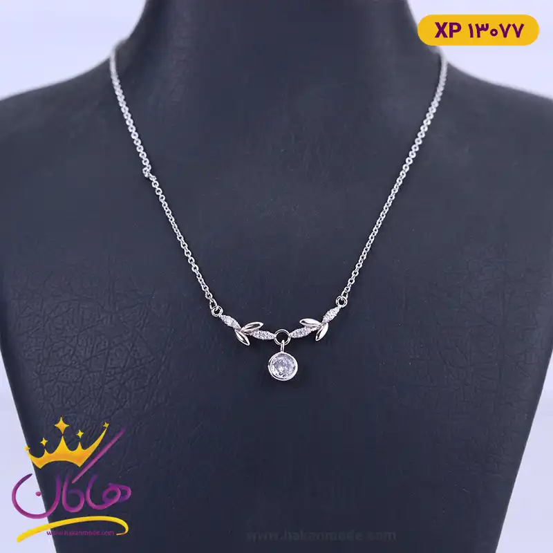 خرید گردنبند استیل زنانه برگ و نگین با بهترین قیمت گردنبند استیل زنانه برگ و نگین طرحی شیک و زیبا