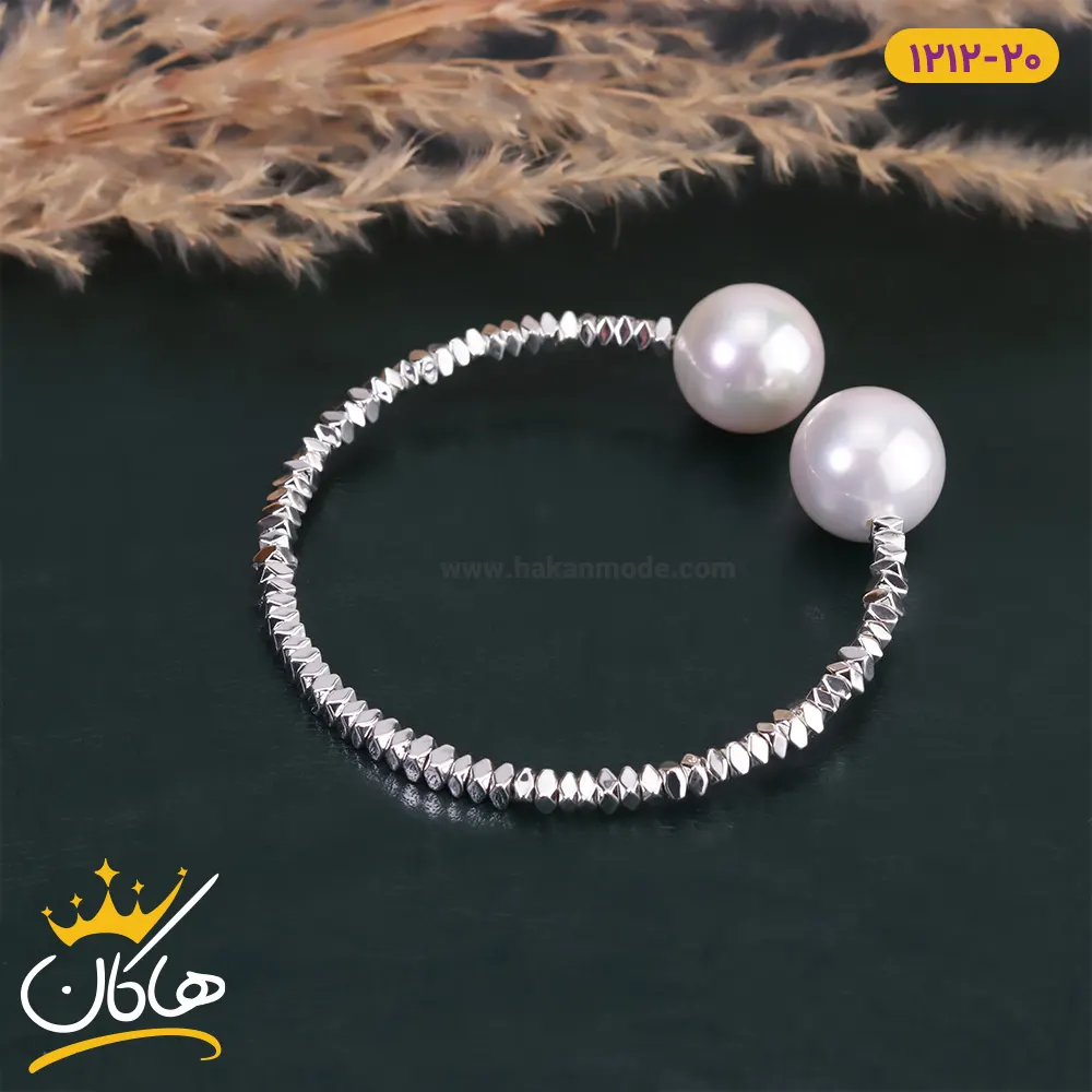 دستبند استیل زنانه النگویی باز مرواریدی | 1212/20