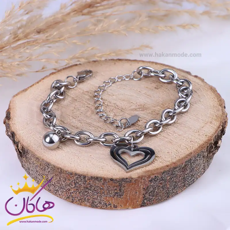 دستبند استیل زنانه زنجیر قلبی | کد xp 743/1