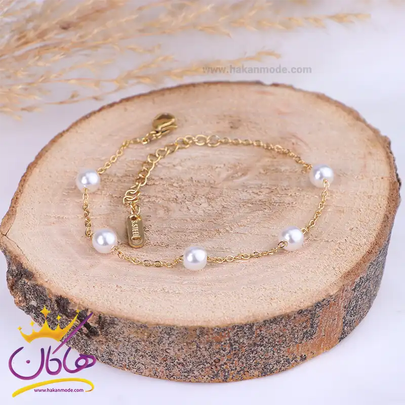 دستبند استیل زنانه زنجیر و مروارید | st 4327
