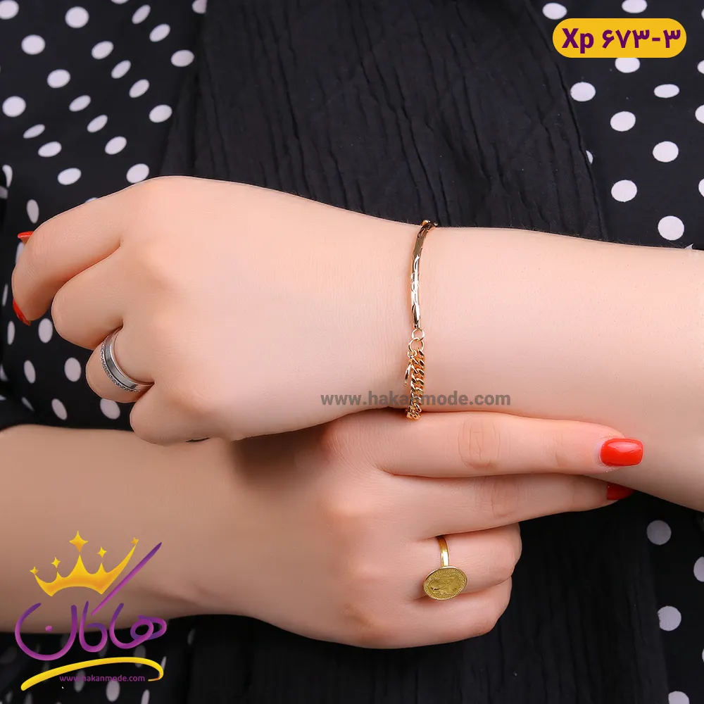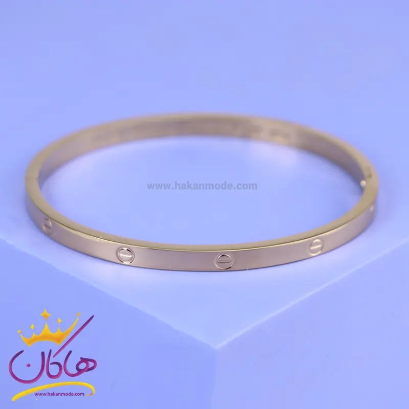 خرید دستبند استیل زنانه کارتیر النگویی طلایی با بهترین قیمت دستبند استیل زنانه کارتیر النگویی طلایی طرحی شیک و زیبا
