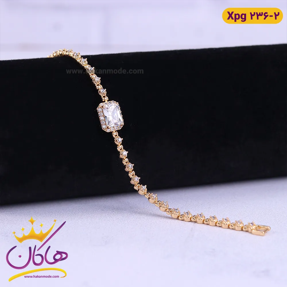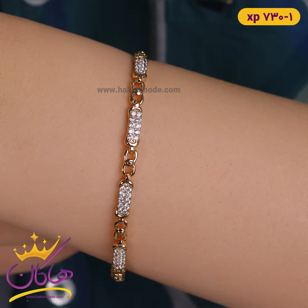دستبند استیل زنانه نگین دار طلایی | کد xpg236/2