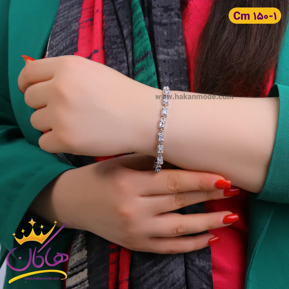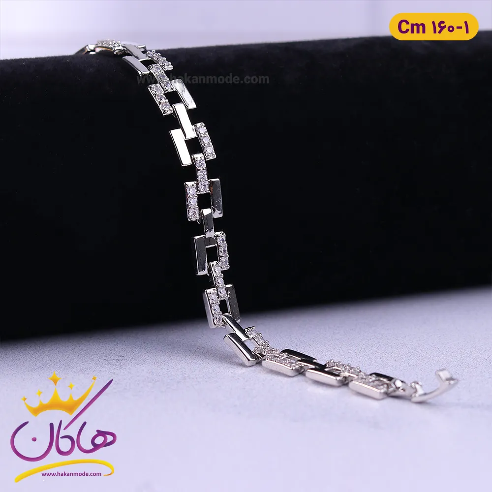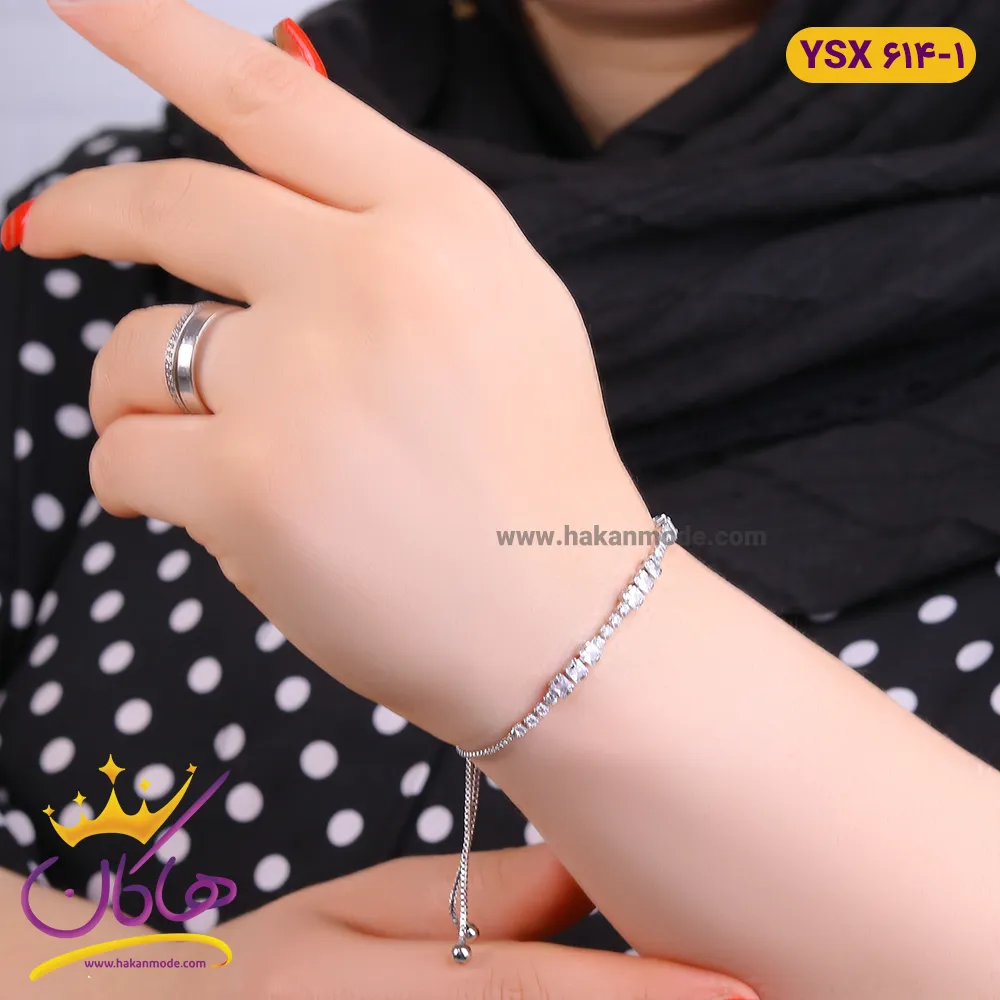 دستبند استیل زنانه مستطیل نگینی | کد xp730/1