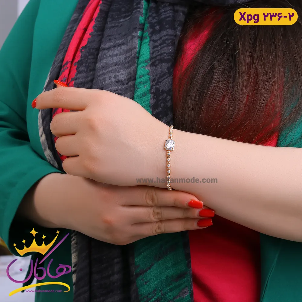 دستبند استیل زنانه نگین مربعی | کد xp638/3