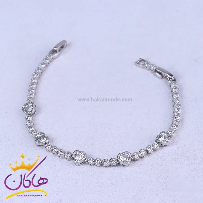 خرید دستبند استیل زنانه نقره ای نگین قلبی با بهترین قیمت دستبند استیل زنانه نقره ای نگین قلبی، طرحی شلوغ