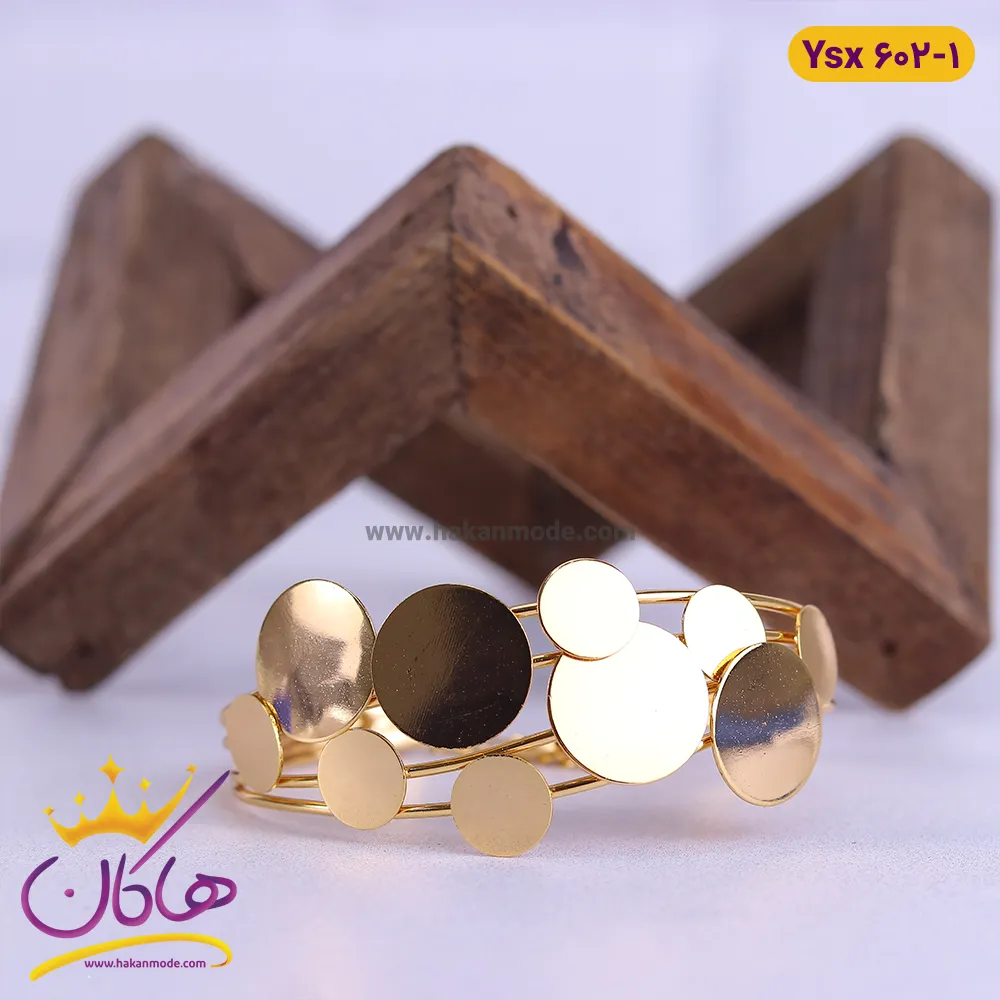 دستبند استیل زنانه النگویی چند لاین طلایی | کد ysx602/1