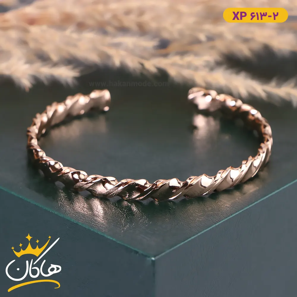 دستبند استیل زنانه النگویی پیچ پیچی باز | کد xp 613/2