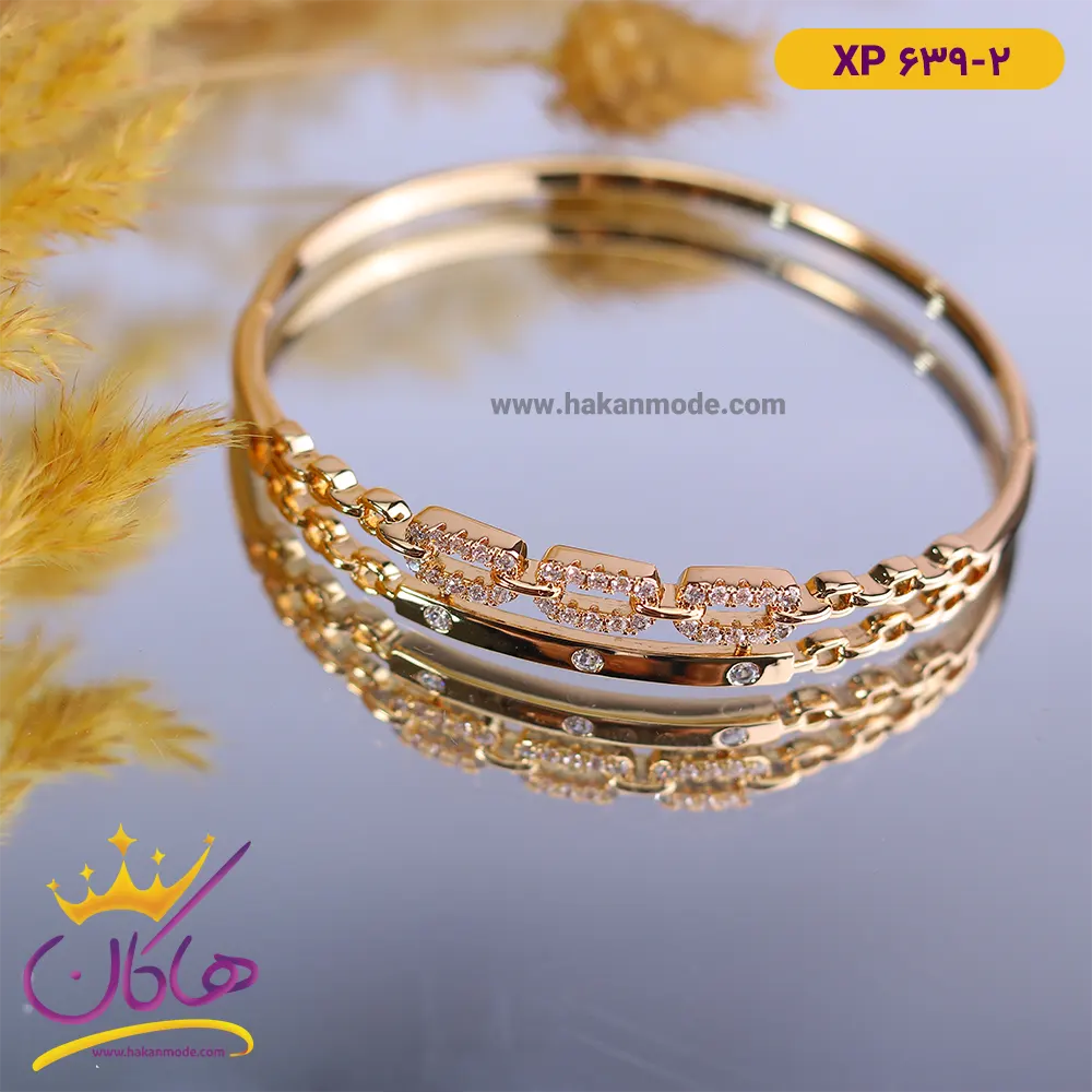 دستبند استیل زنانه النگویی دو لایه | کد xp678/2