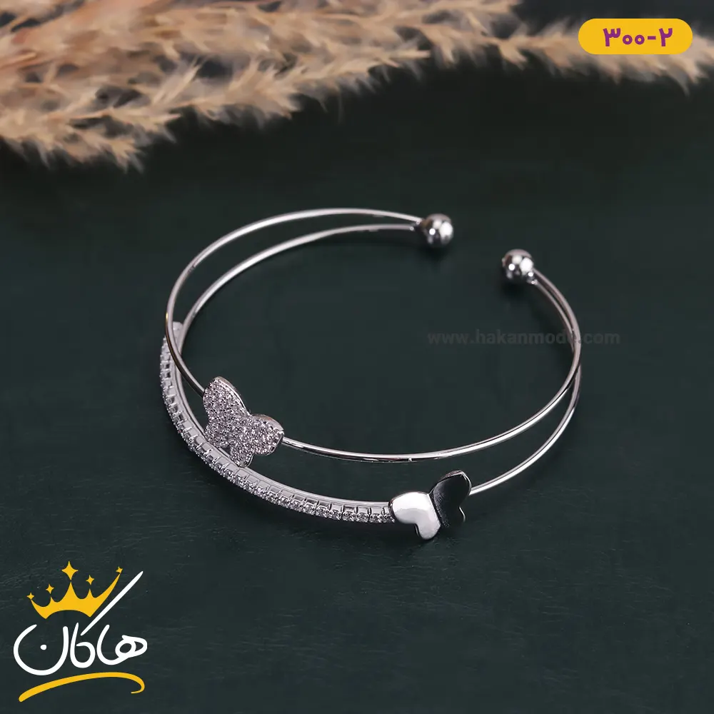 دستبند استیل زنانه النگویی دو لاین پروانه | BND 300/2