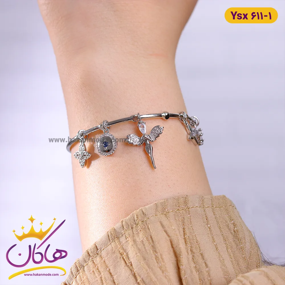 دستبند النگویی استیل زنانه آویز دار | کد YSX611/1
