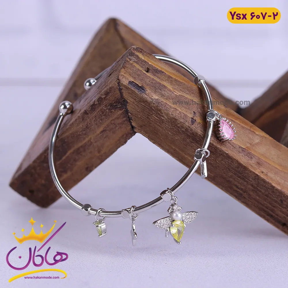 دستبند النگویی استیل زنانه آویز زنبور | کد ysx607/2