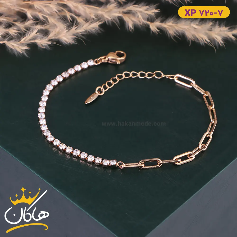 دستبند استیل زنانه نیم نگین نیم زنجیر | کد xp720/7