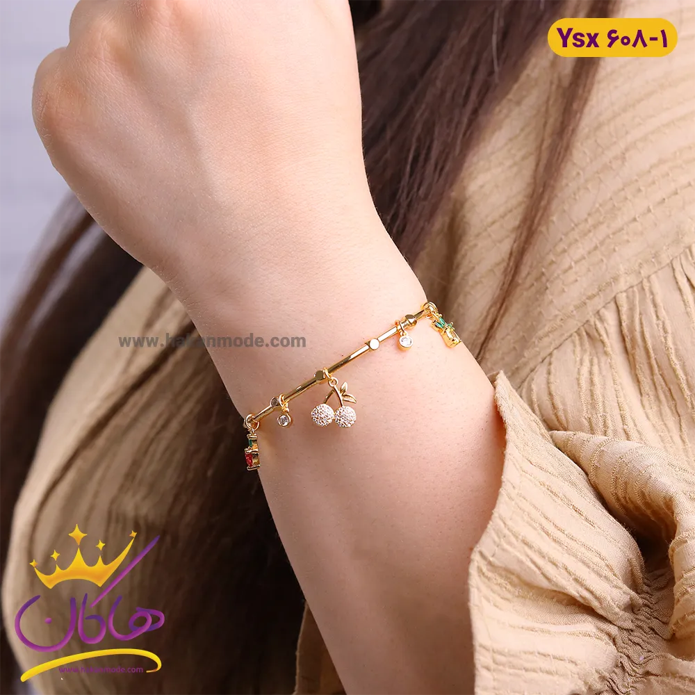 دستبند النگویی استیل زنانه آویز دار طلایی | کد ysx608/1