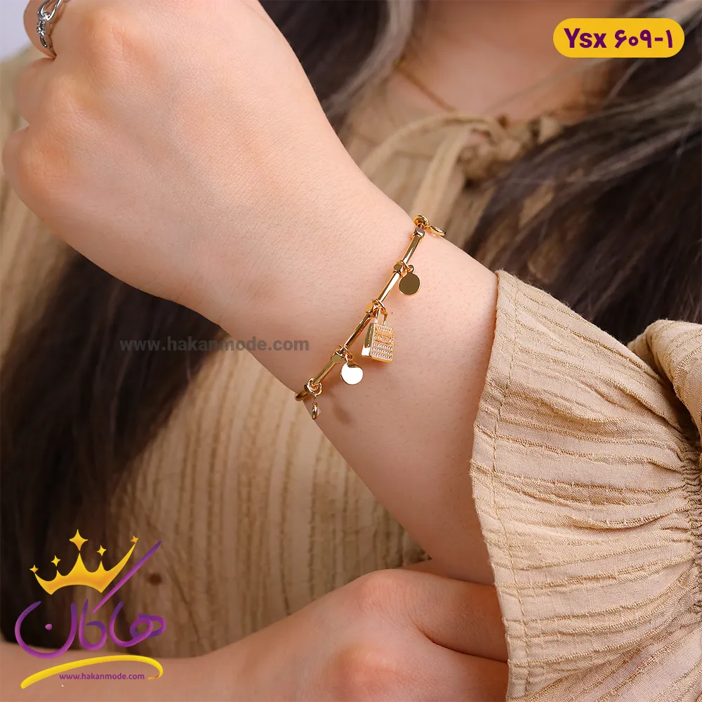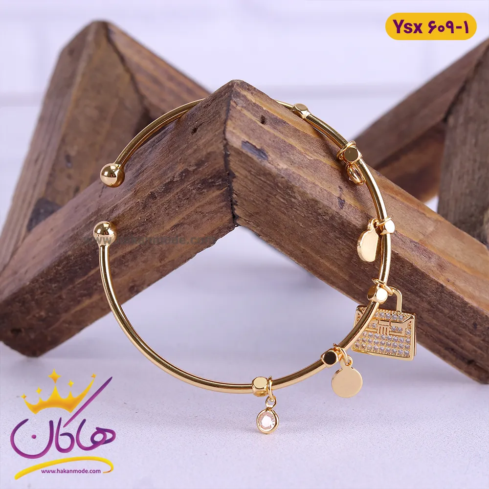 دستبند النگویی استیل زنانه نگین دار آویز کیف دستی | کد ysx609/1