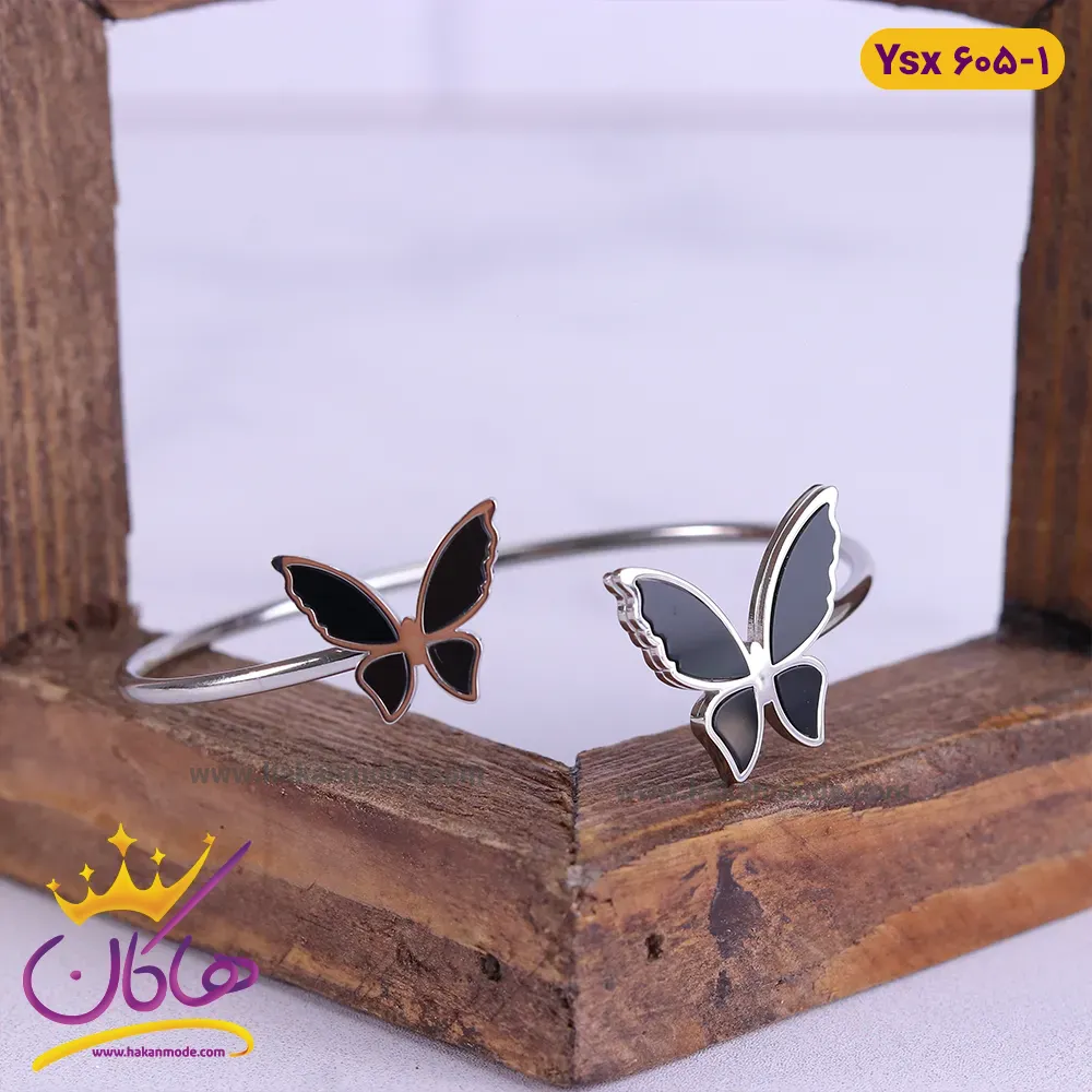 دستبند النگویی استیل زنانه مدل پروانه ای | کد ysx605/1