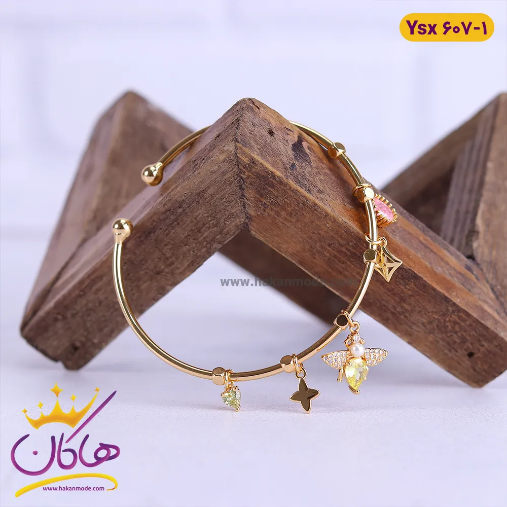 دستبند النگویی استیل زنانه اویز زنبور طلایی | کد ysx607/1