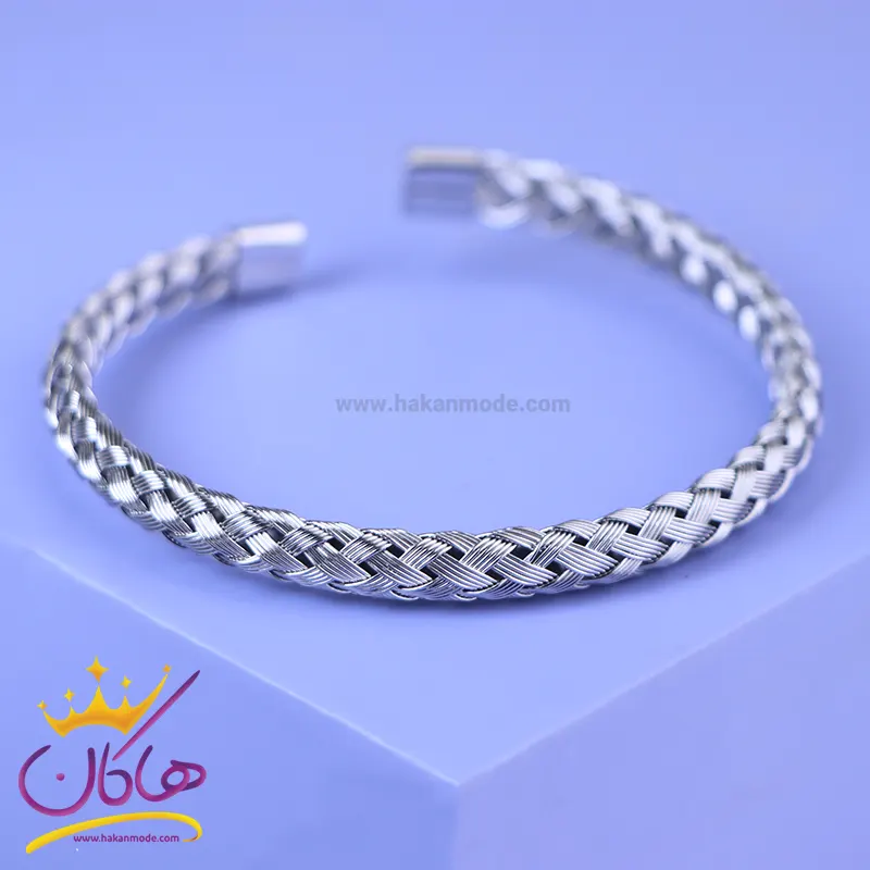 دستبند زنانه بنگل نقره ای طرح بافت 0024