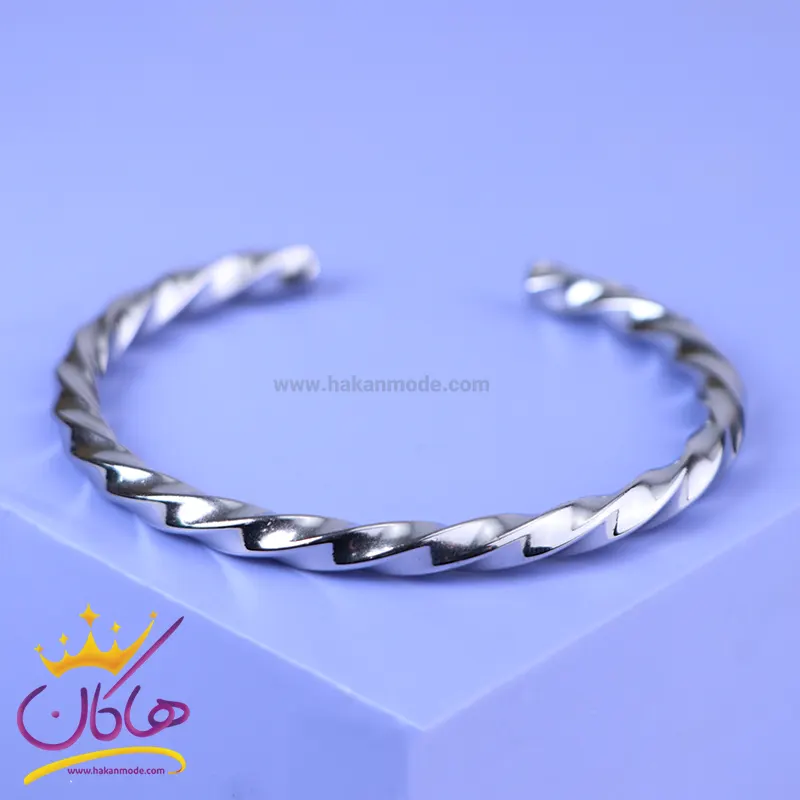 خرید دستبند زنانه بنگل تمام پیچ نقره ای دستبند زنانه بنگل طرحی شیک و زیبا دارد. این دستبند نقرهای رنگ