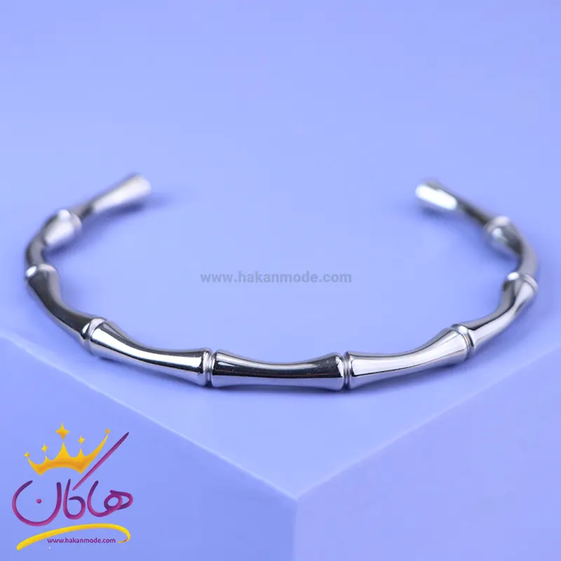 خرید دستبند زنانه بنگل طرح بامبو نقره ای دستبند زنانه بنگل طرحی ساده و زیبا دارد. این دستبند نقرهای رنگ