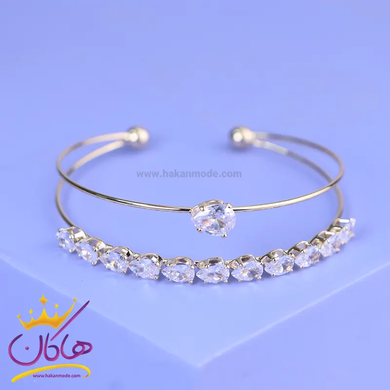 دستبند زنانه بنگل دو لاین نگین اشکی SP 3083
