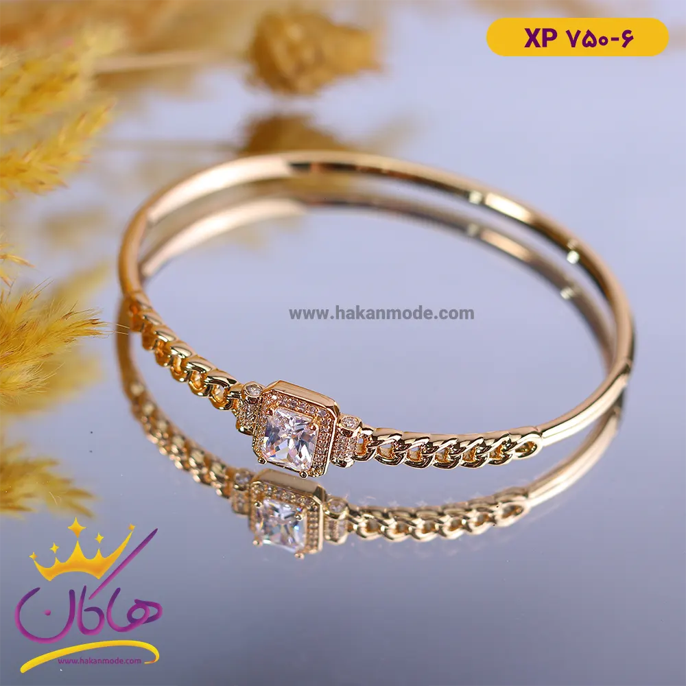 دستبند استیل زنانه النگویی نگین مربع | کد xp750/6