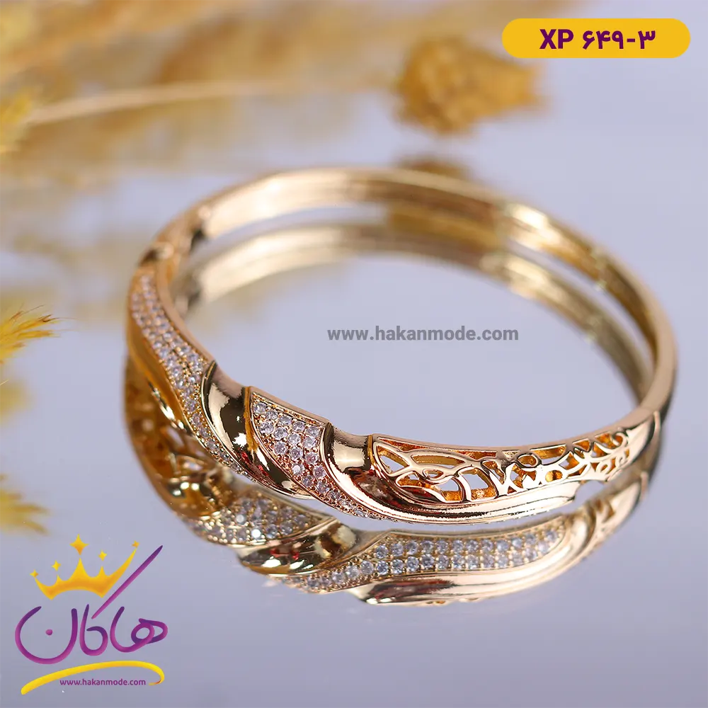 دستبند استیل زنانه النگویی نگینی | کد xp665/1