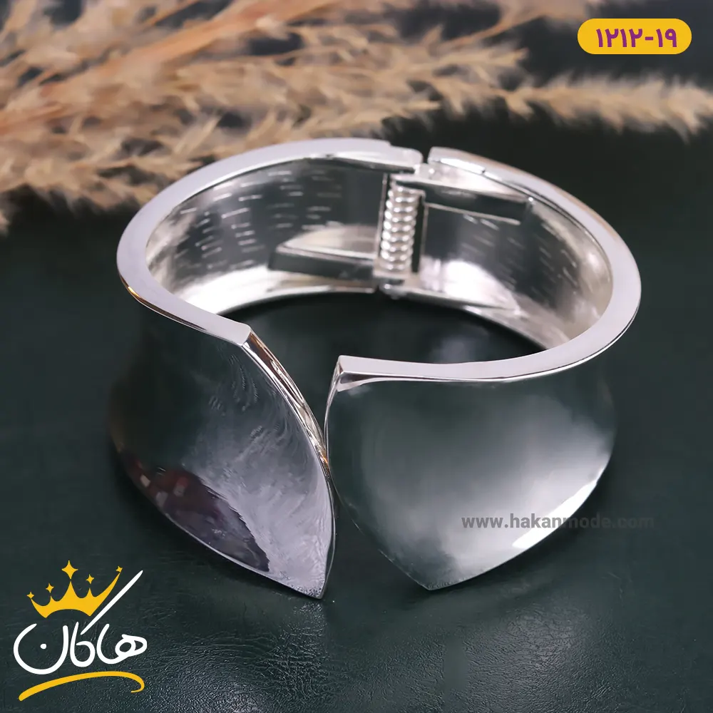 خرید دستبند استیل زنانه النگویی نقره ای با بهترین قیمت دستبند استیل زنانه النگویی نقره ای طرحی خاص و جذاب