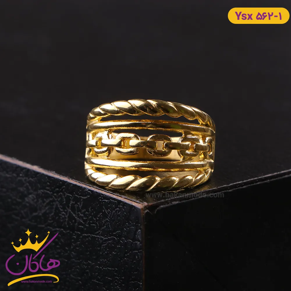 انگشتر استیل زنانه چند لایه طلایی | ysx 562/1