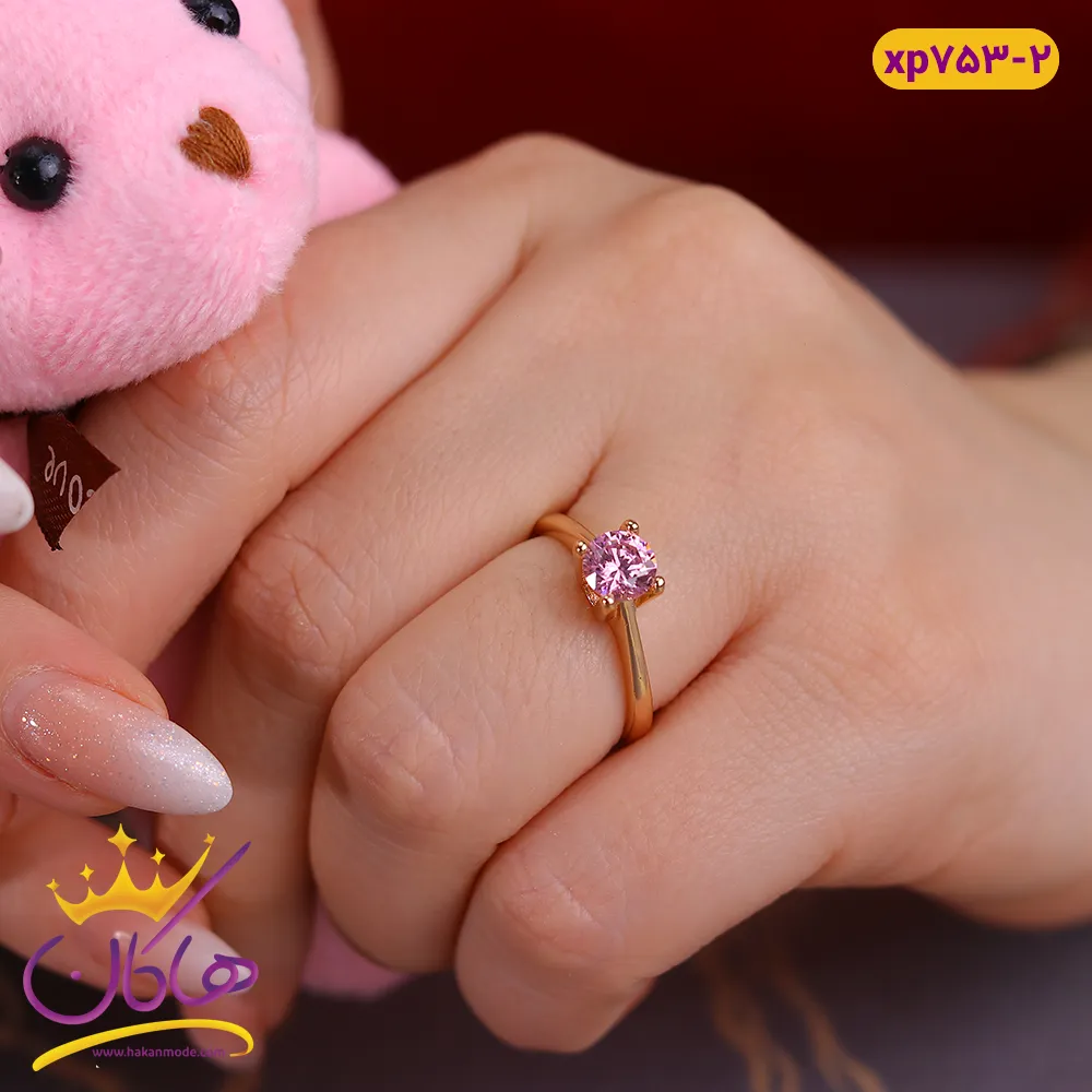 انگشتر زنانه تک نگین صورتی | XP753/2