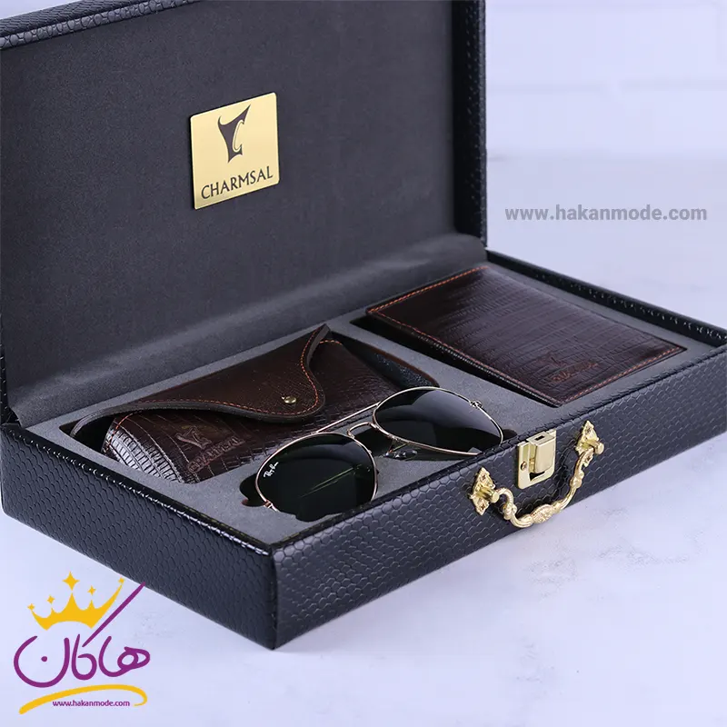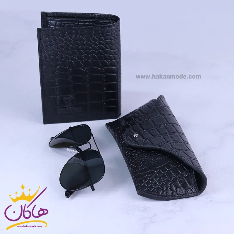 ست کیف چرم و عینک مردانه چرمسال مشکی 181/1