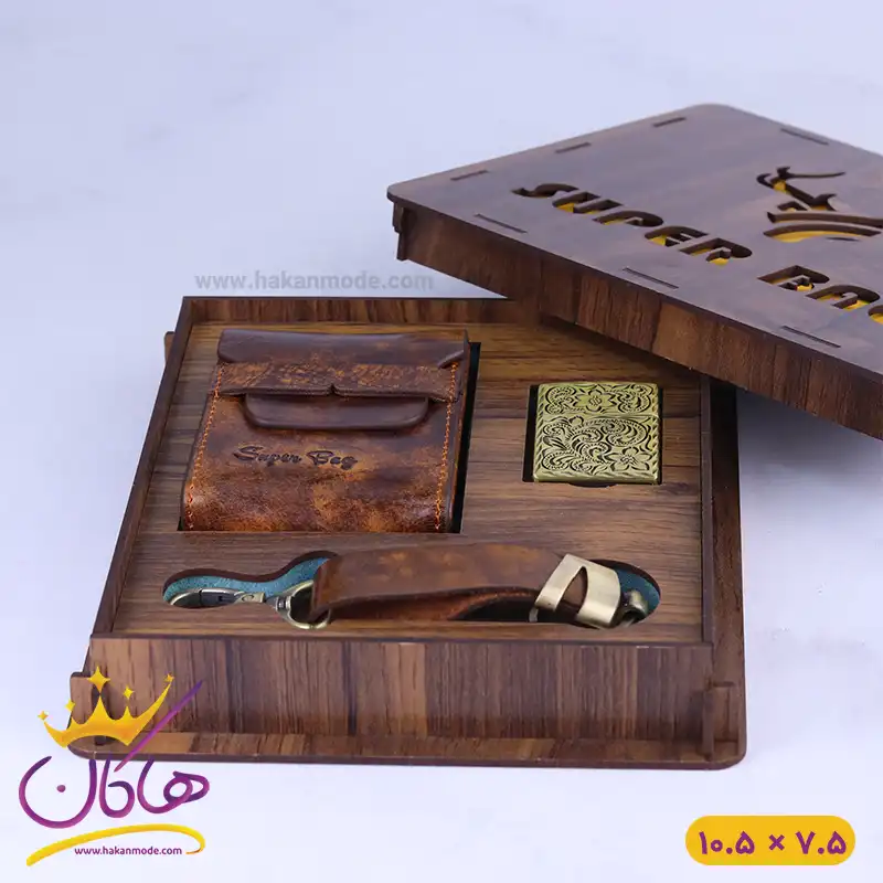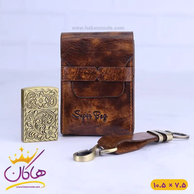 ست کیف سیگار چرم و فندک و جاکلیدی 8828/1