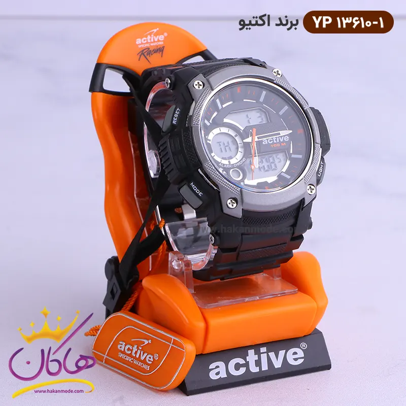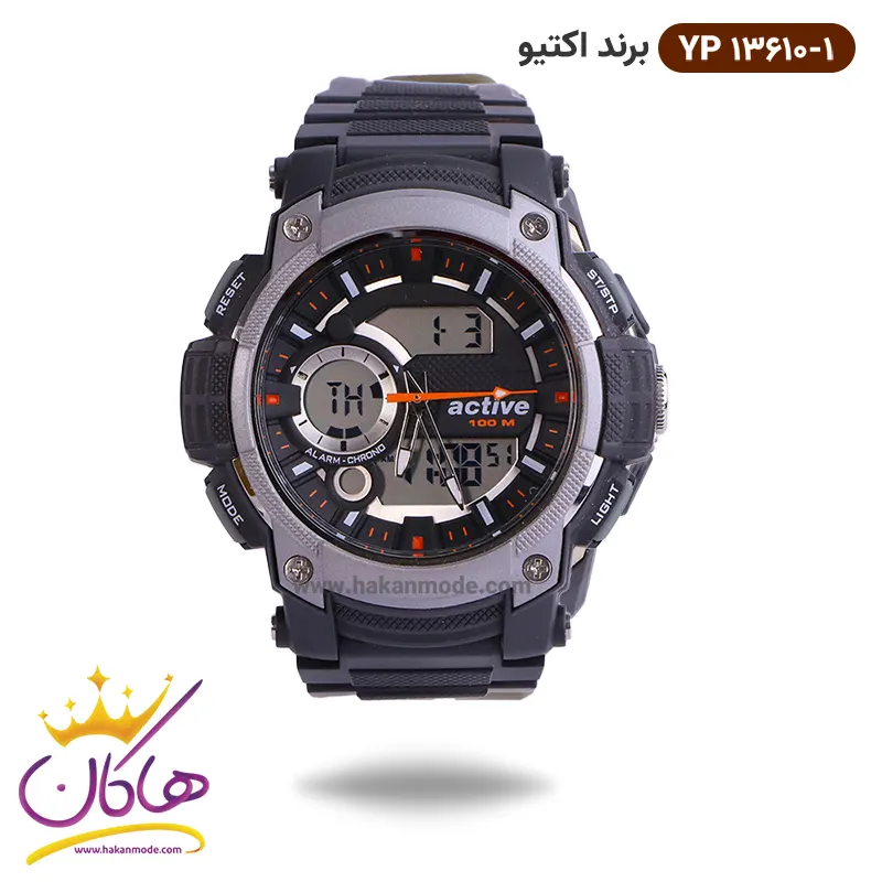ساعت پسرانه اکتیو دو زمانه طوسی مشکی کد 18765/06 yp