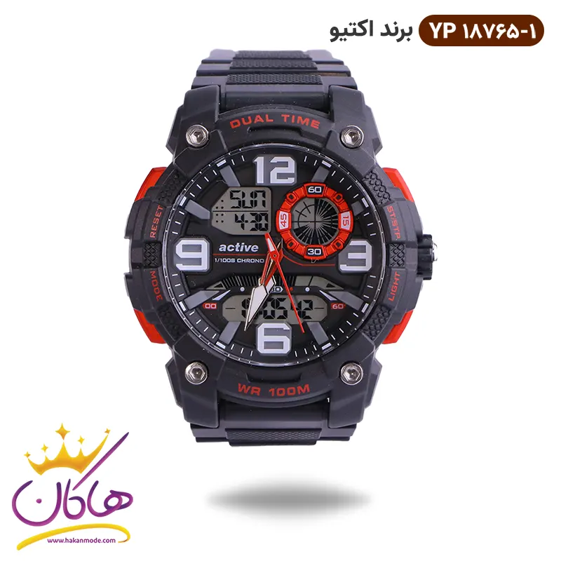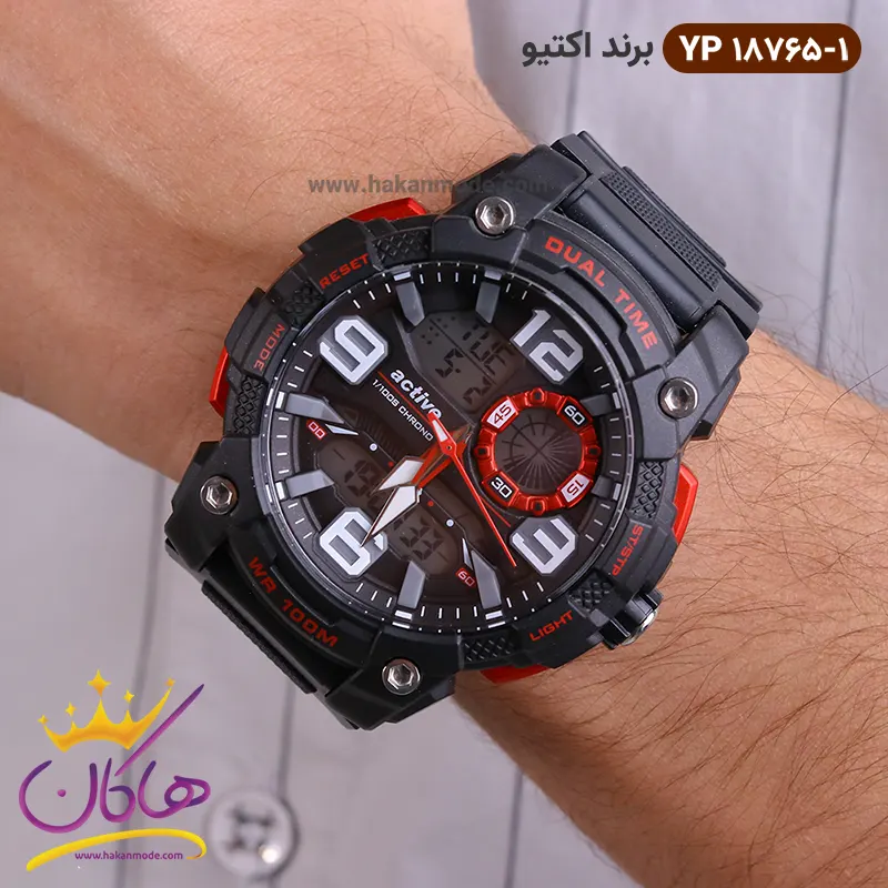 ساعت پسرانه اکتیو دو زمانه مشکی قرمز کد 18765/01 yp