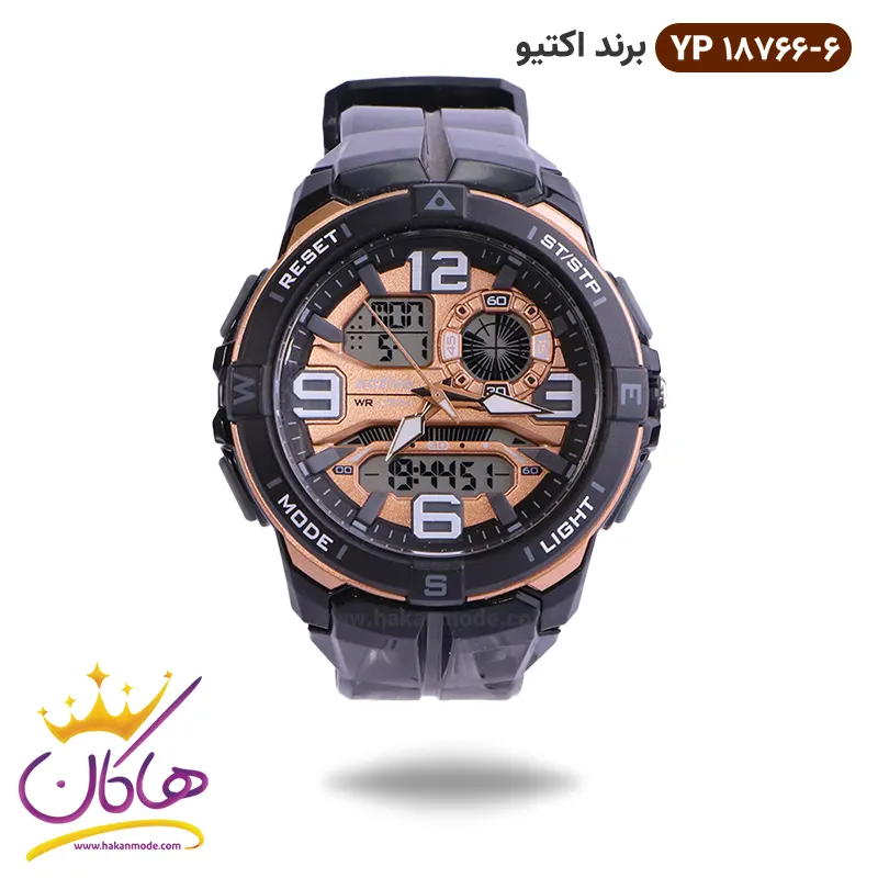 ساعت پسرانه اکتیو دو زمانه مشکی رزگلد کد 18766/06 yp