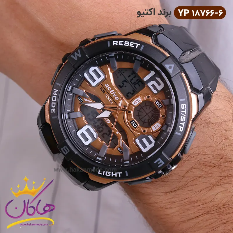 ساعت اکتیو پسرانه دو زمانه مشکی طلایی 2-13610 yp