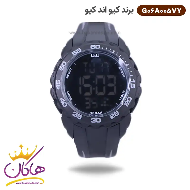 خرید ساعت کیو اند کیو مردانه رابر مشکی دیجیتالی G06A005VY در خرید ساعت کیو اند کیو مردانه بند رابر، اورجینال