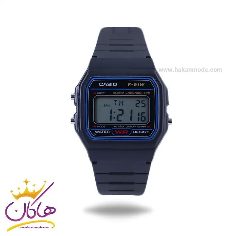 ساعت مچی کاسیو زنانه بند رابر مشکی دیجیتالی F-91W-1DG