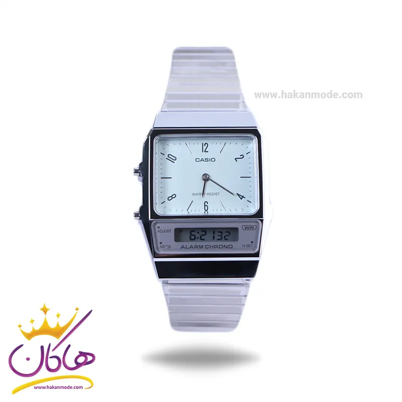 ساعت مچی کاسیو مردانه فلزی نقره ای دو زمانه AQ-800E-3ADF