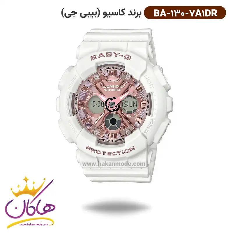 خرید ساعت کاسیو بیبی جی زنانه بند رابر دو زمانه BA-130-7A1DR در خرید ساعت بیبی جی زنانه بند رابر، اورجینال