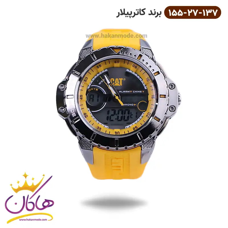 ساعت کاترپیلار مردانه بند رابر زرد دو زمانه MA.155.27.137