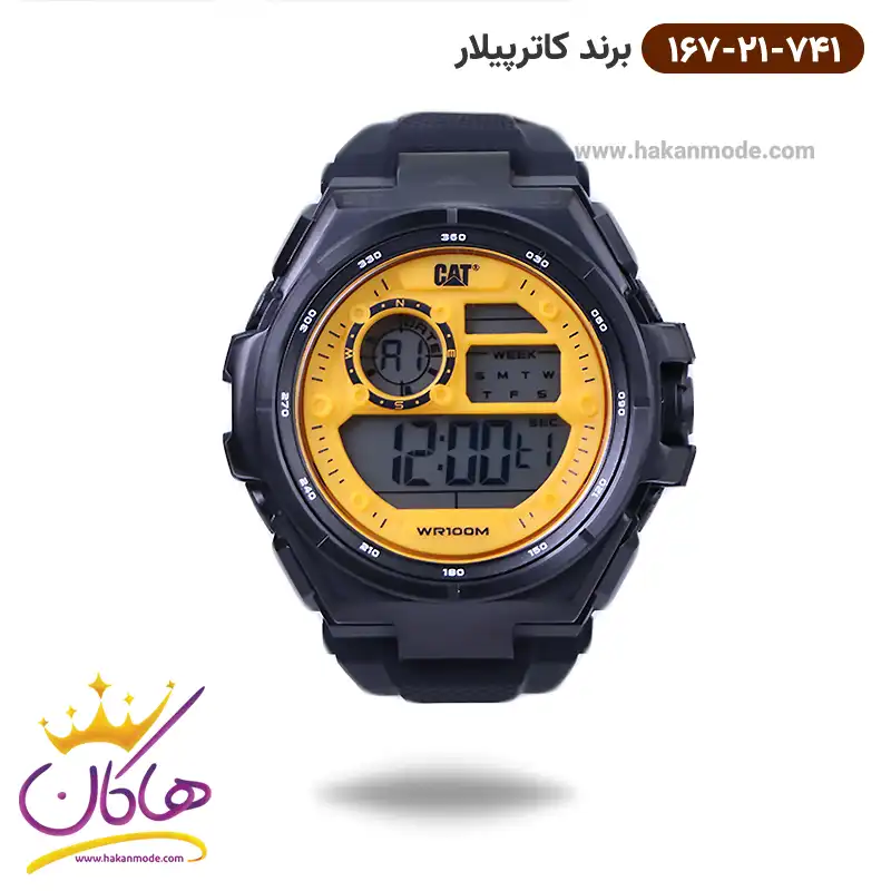 خرید ساعت کاترپیلار مردانه رابر صفحه زرد دیجیتالی OD.167.21.741 در خرید ساعت کاترپیلار مردانه بند رابر، اورجینال بودن از همه