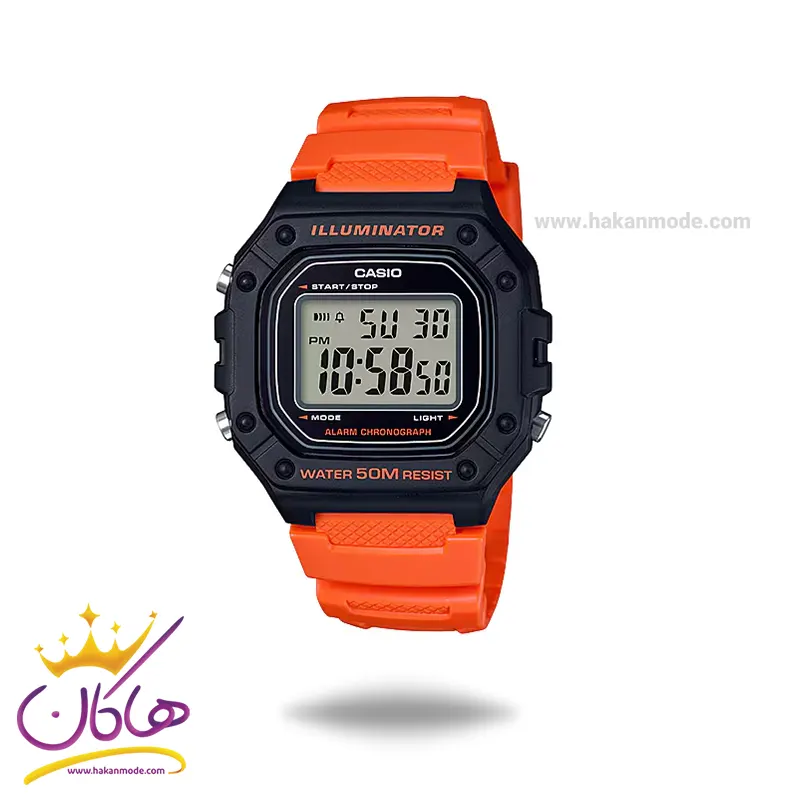 ساعت کاسیو مردانه بند رابر نارنجی دیجیتال W-218H-4B2VDF