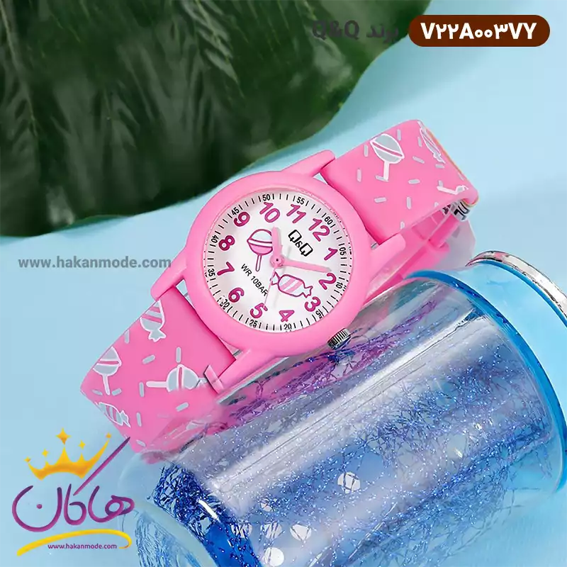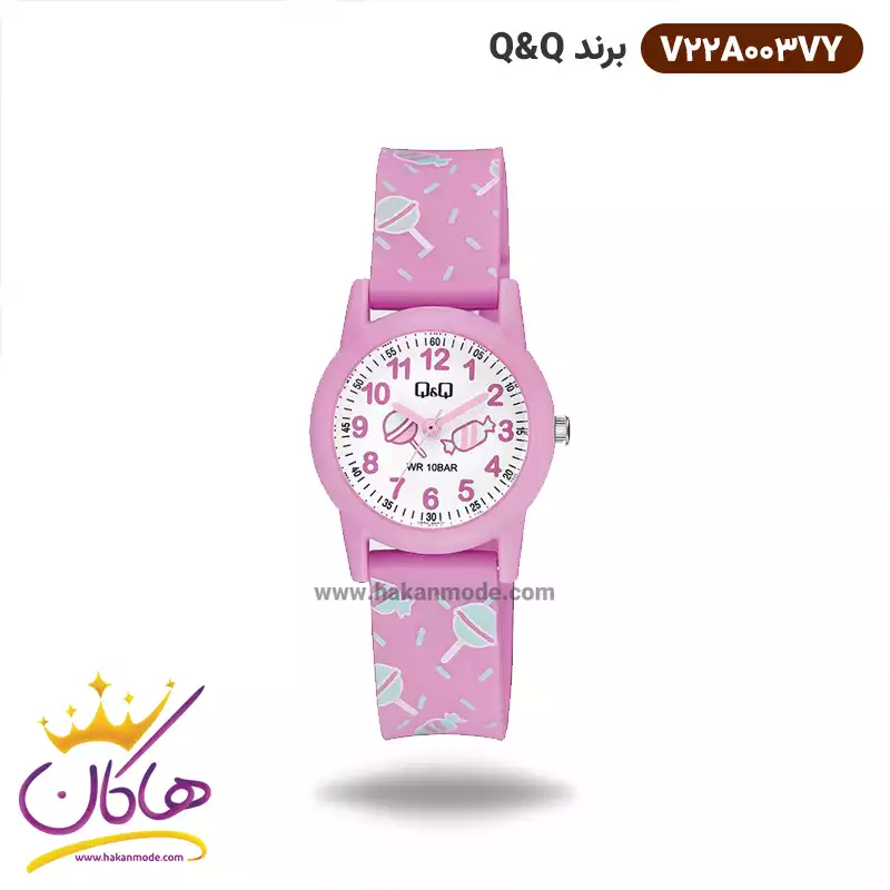 خرید ساعت کیو اند کیو دخترانه سیلیکونی صورتی طرح آبنبات V22A003VY در خرید ساعت مچی دخترانه سیلیکونی، اورجینال بودن از