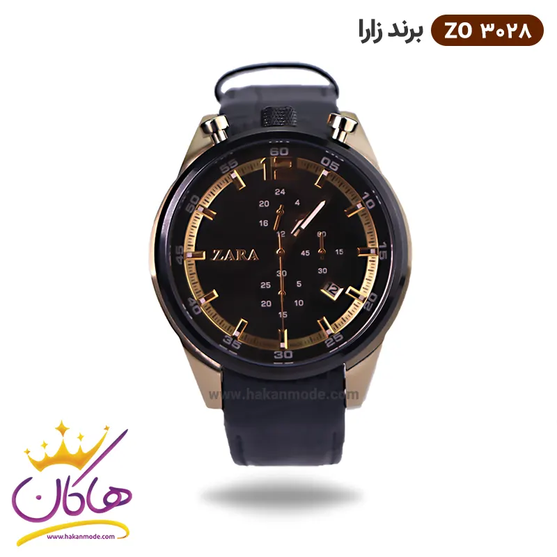 خرید ساعت زارا مردانه بند چرم مشکی طلایی کرنوگراف G3028/3 در خرید ساعت زارا مردانه بند چرمی، اورجینال بودن از