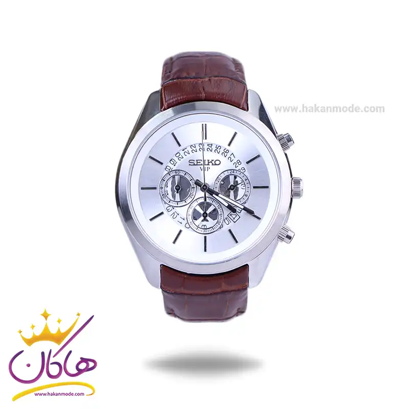 ساعت سیکو مردانه بند چرم قهوه ای قاب نقره ای کرنوگراف G9121/1