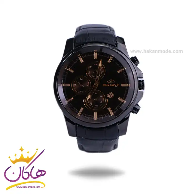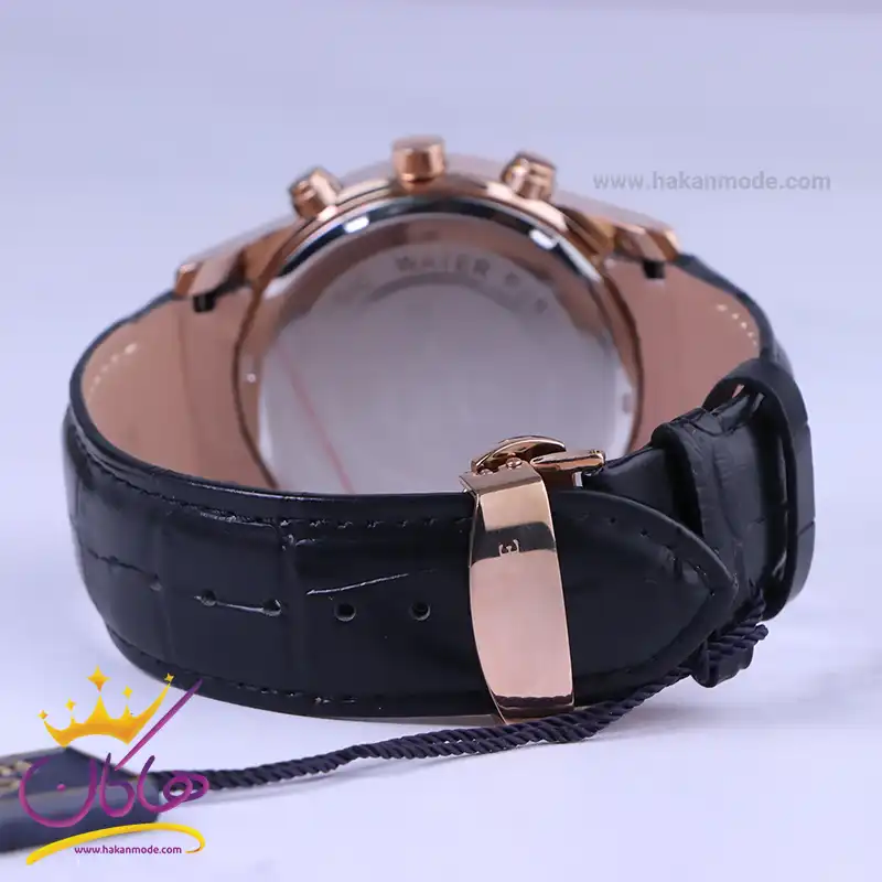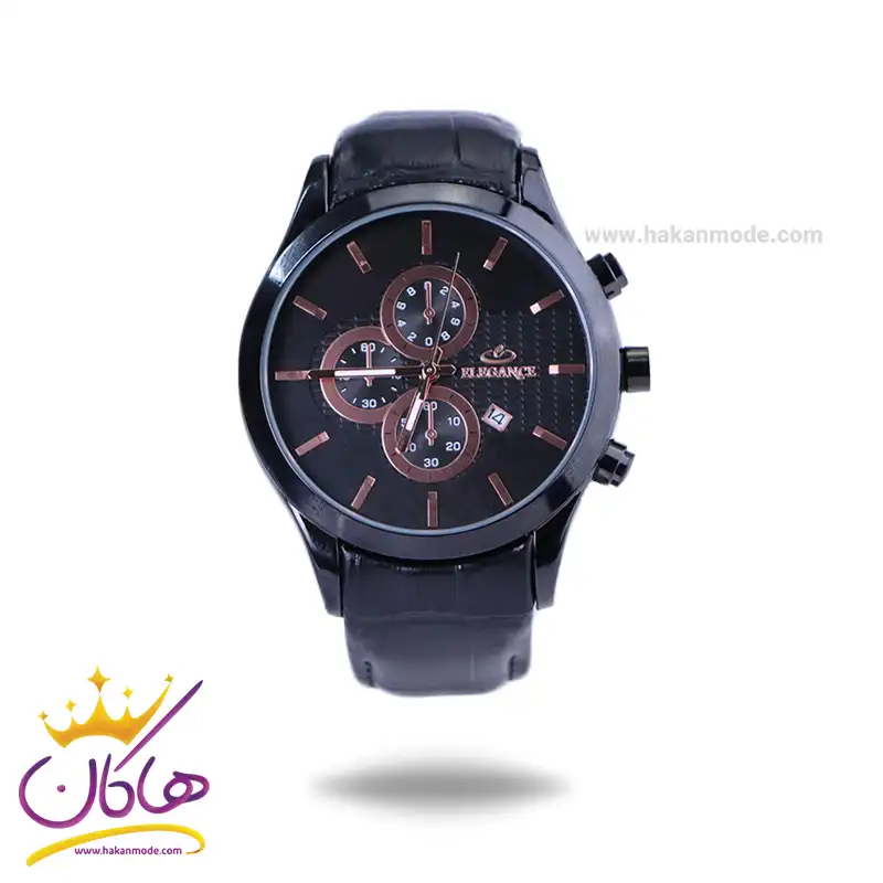 ساعت عقربه ای الگانس مردانه بند چرم مشکی قاب رزگلد G1196/1