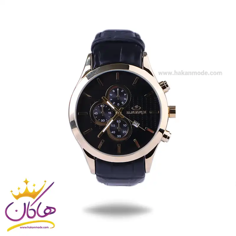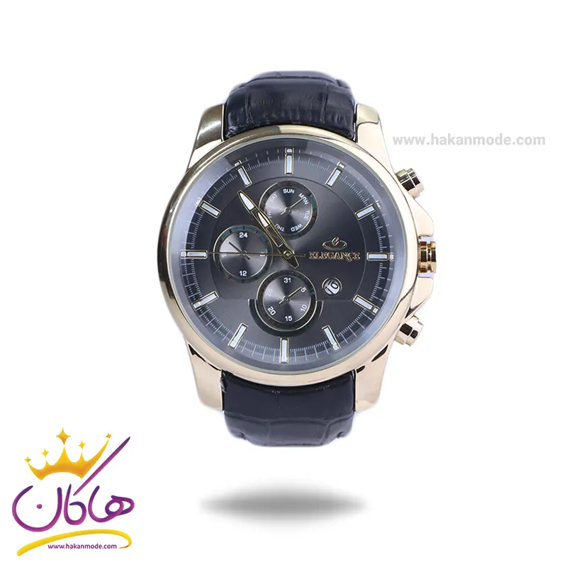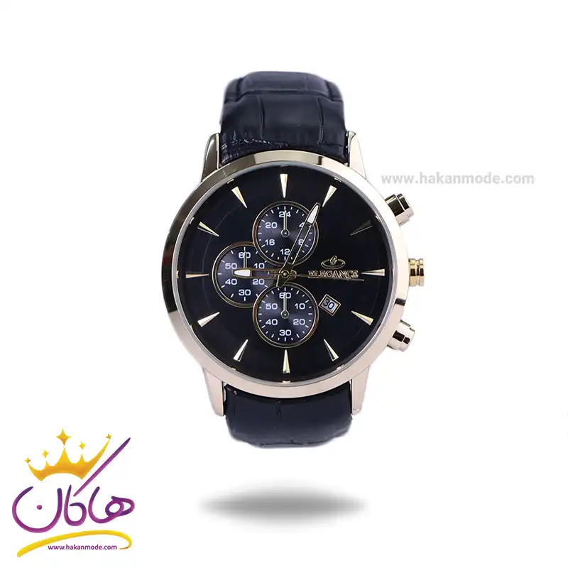 ساعت عقربه ای الگانس مردانه بند چرم مشکی قاب طلایی G2095/4