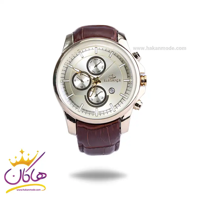 ساعت عقربه ای الگانس مردانه بند چرم قهوه ای قاب طلایی G2097/1